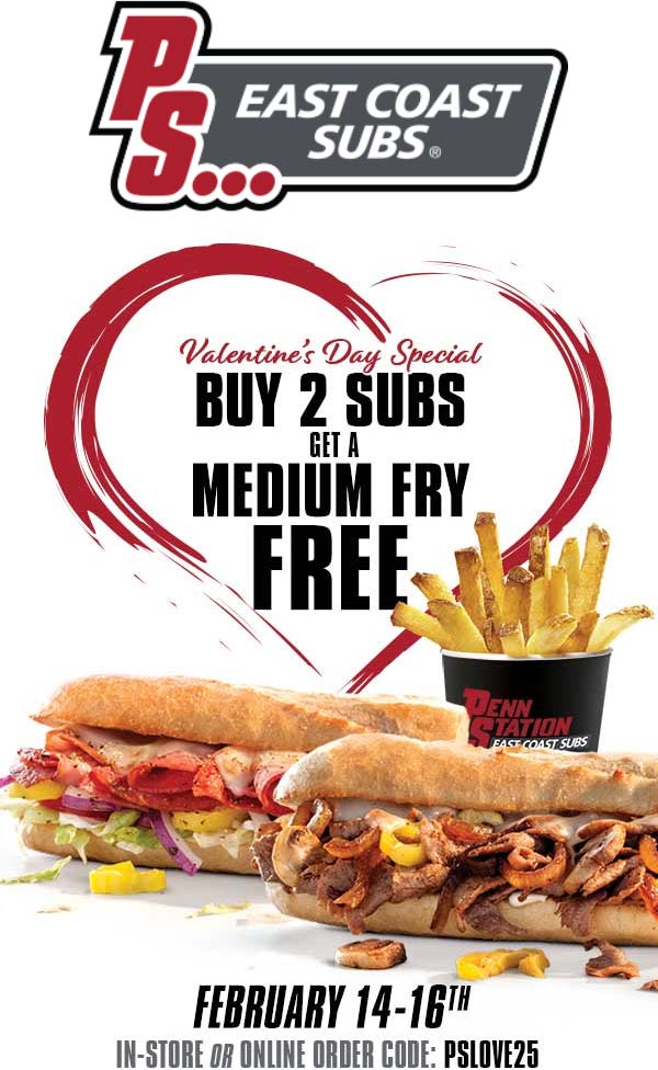 Penn Station Coupons Free fries with your sub Thursday at Penn Station