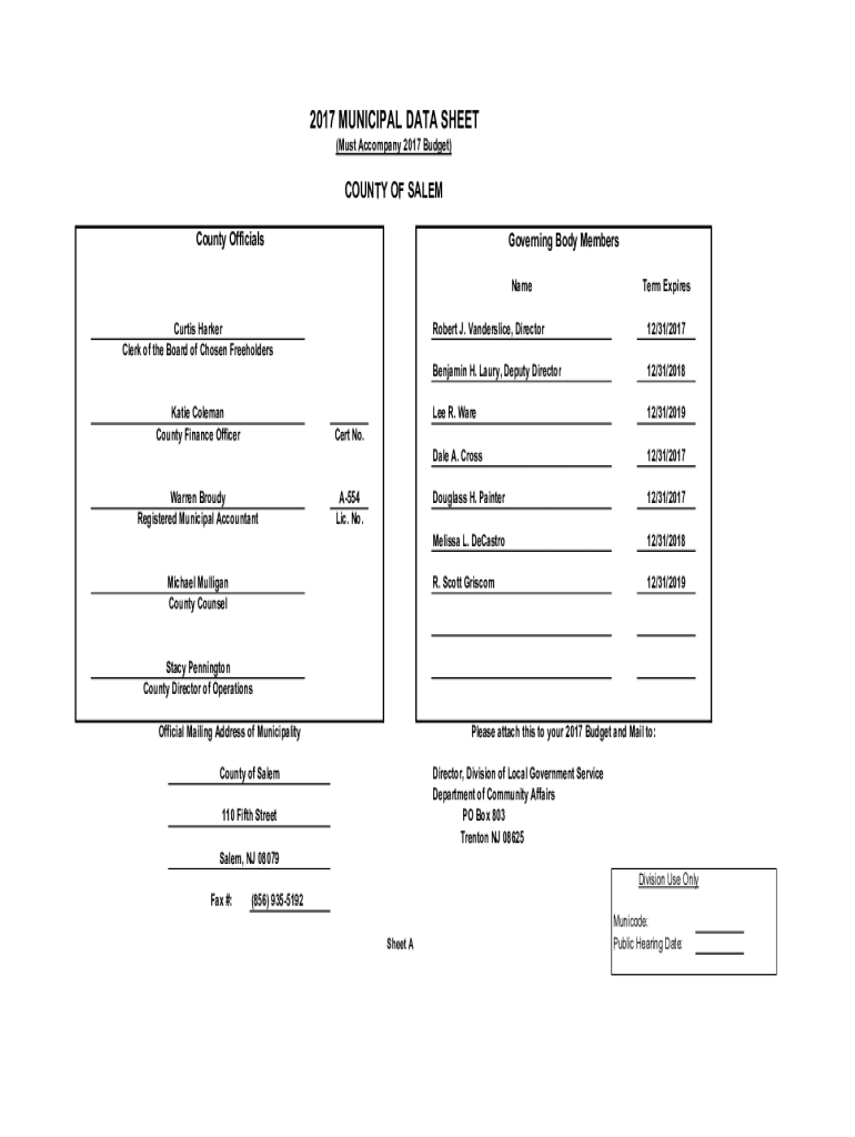 Fillable Online 2021 MUNICIPAL DATA SHEET Penns Grove New Jersey Fax