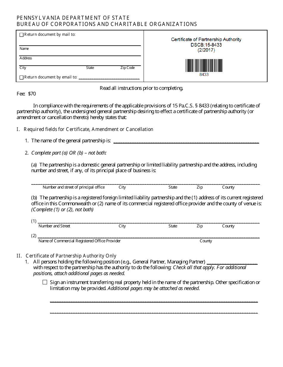 Form DSCB:15 8433 Fill Out Sign Online and Download Fillable PDF
