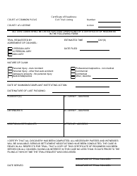 County of Luzerne Pennsylvania Certificate of Readiness Civil Trial