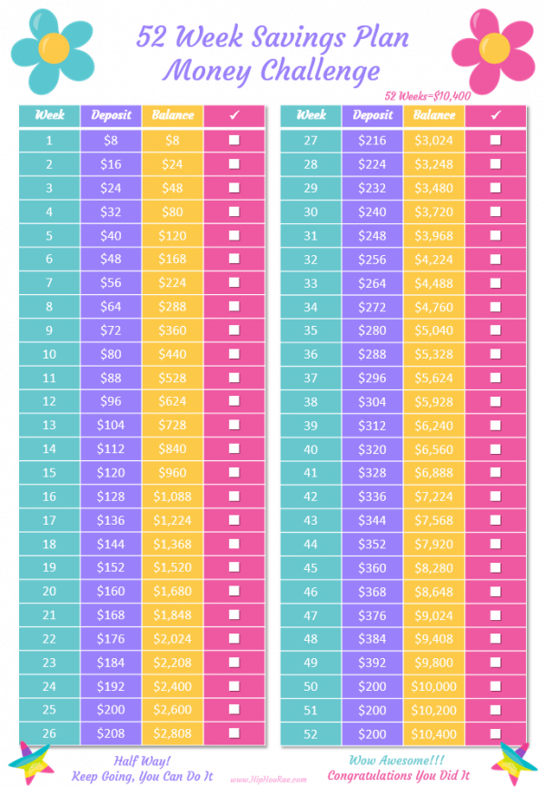 52 Week Saving Plan Money Challenge Hip Hoo Rae