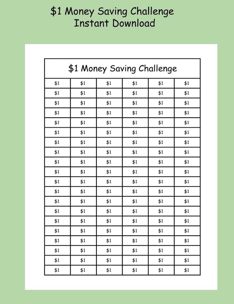 Money Saving Challenge Printable for 1 2 5 10 50 Dollor Bill Etsy