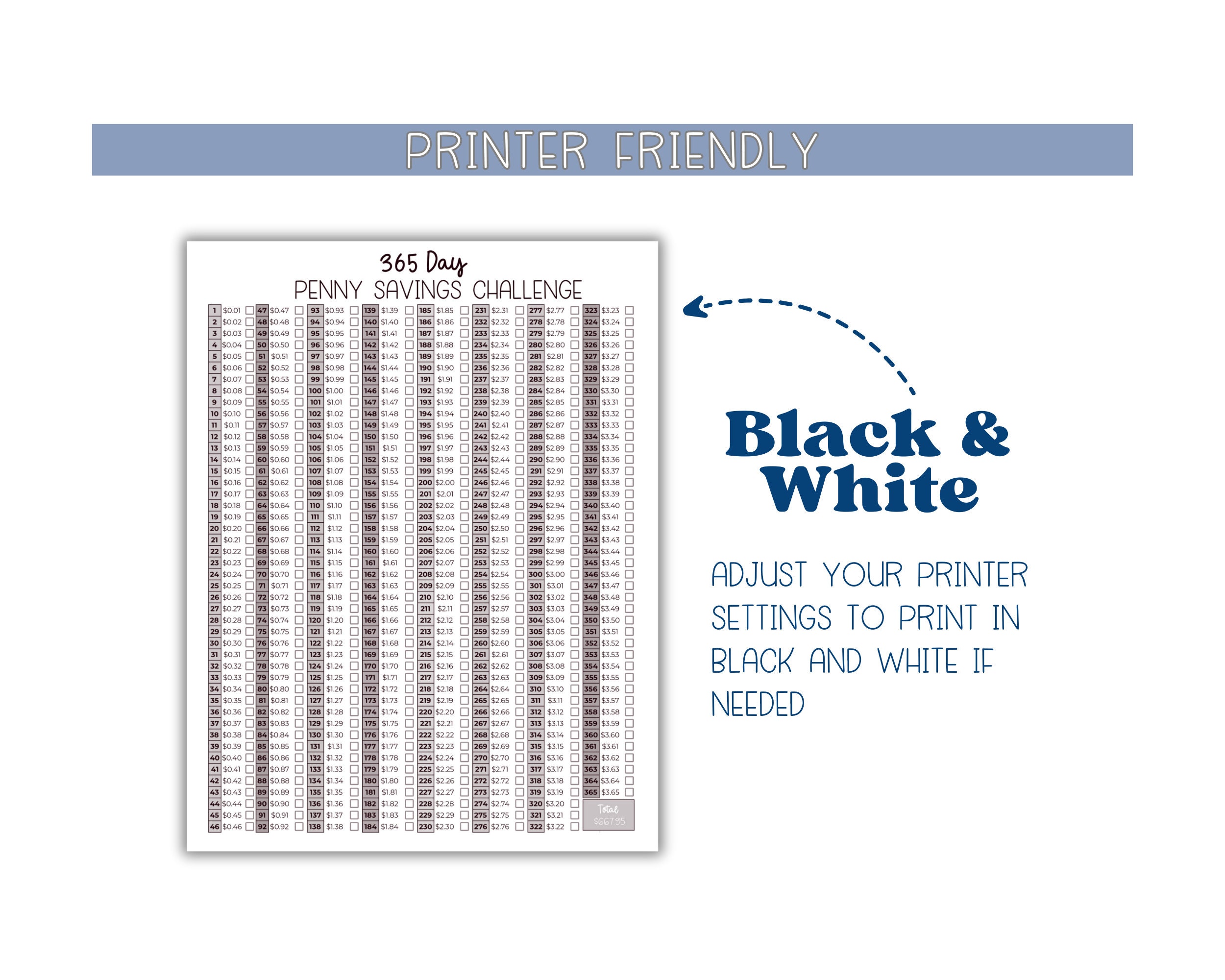 Penny Savings Challenge PRINTABLE 365 Day Penny Saving Chart 2024 Mini