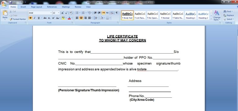 Pension Life Certificate Form prntbl concejomunicipaldechinu gov co