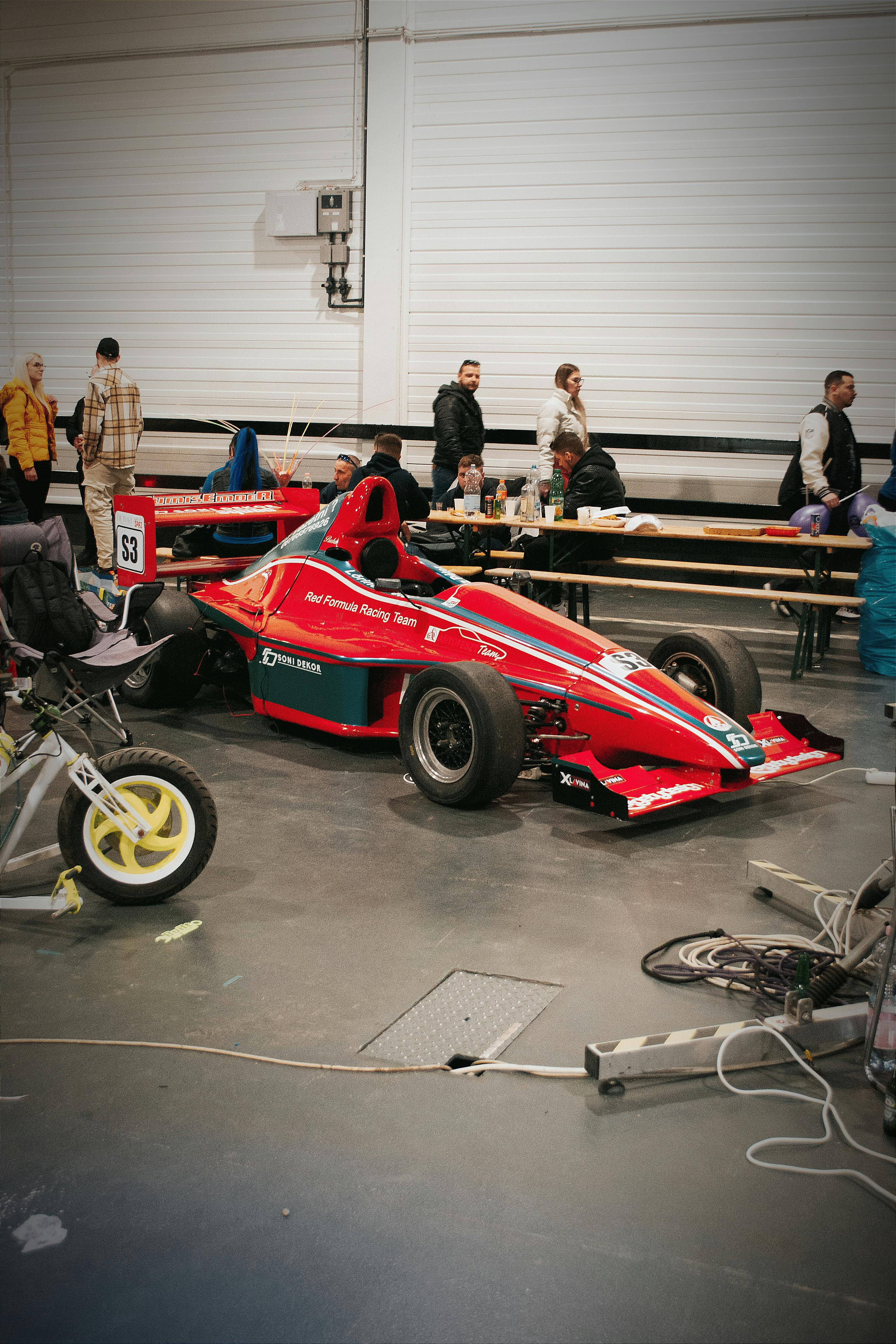 Formula 1 Pit Crew in Uniforms Surrounds a Racing Car Performing a Pit