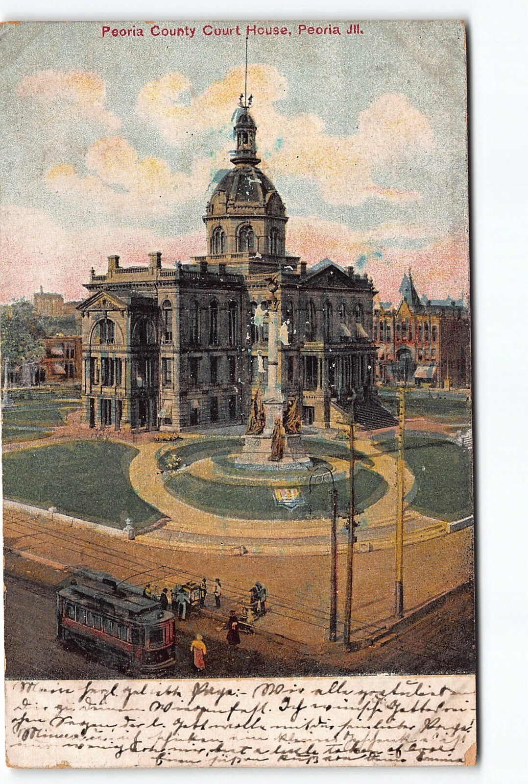 Peoria County Court House llinois IL Trolley Car UDB Postcard Vtg