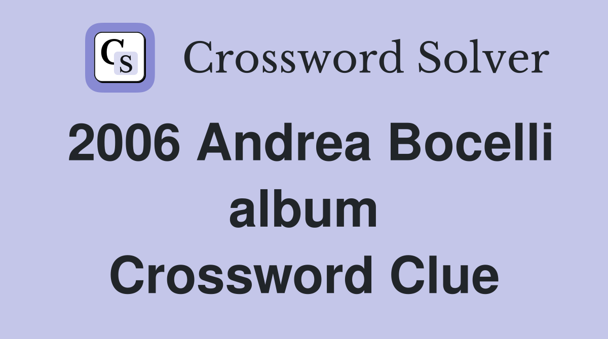 2006 Andrea Bocelli album Crossword Clue Answers Crossword Solver