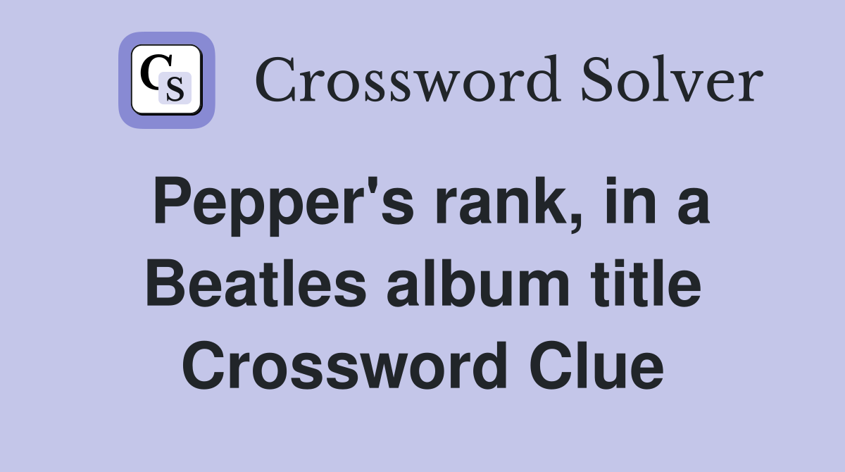 Pepper #39 s rank in a Beatles album title Crossword Clue Answers