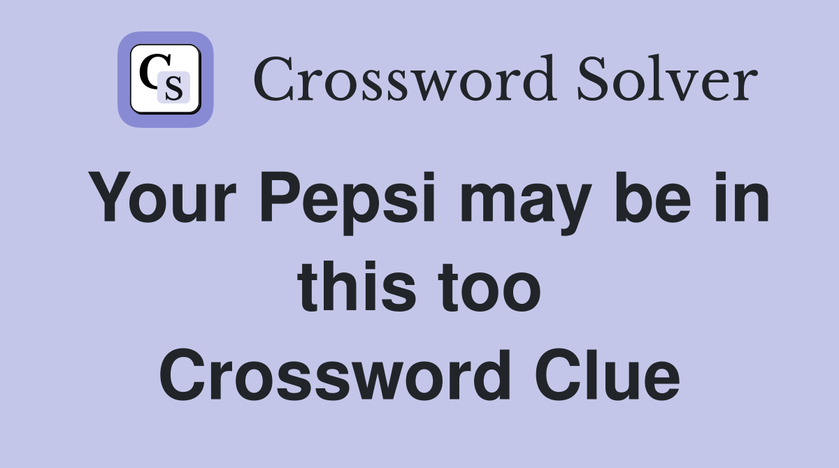 Your Pepsi may be in this too Crossword Clue Answers Crossword Solver