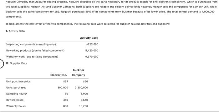 Solved Noguchi Company manufactures cooling systems Noguchi Chegg com