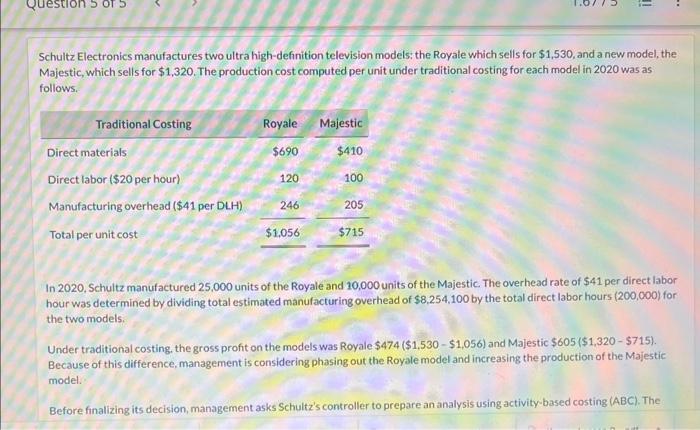 Solved Schultz Electronics manufactures two ultra Chegg com