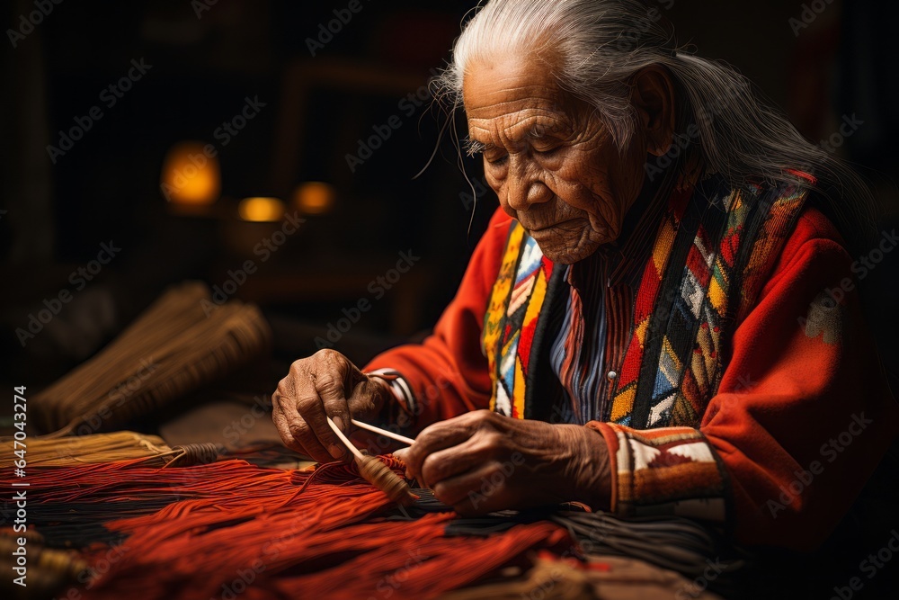 Member of the Nez Perce tribe weaving a traditional blanket Generative