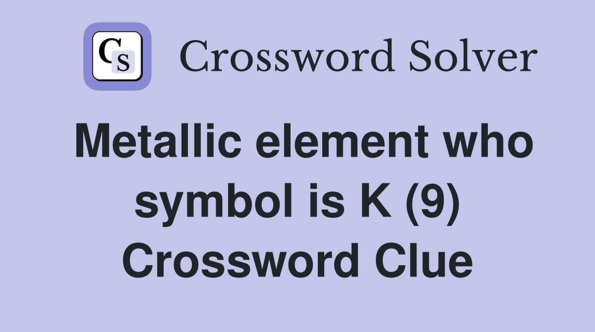 Metallic element who symbol is K (9) Crossword Clue Answers