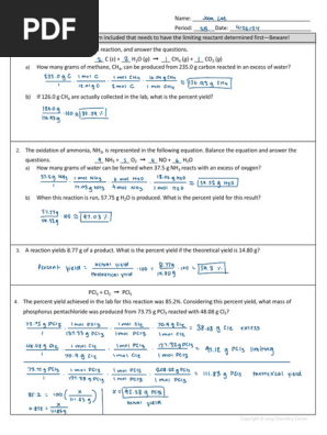 Percent yield worksheet with answers pdf Stoichiometry Percent
