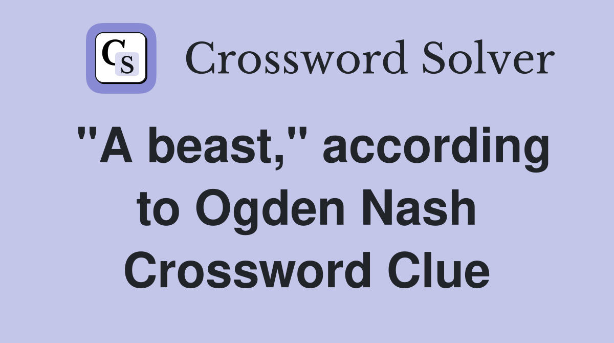 quot A beast quot according to Ogden Nash Crossword Clue Answers Crossword