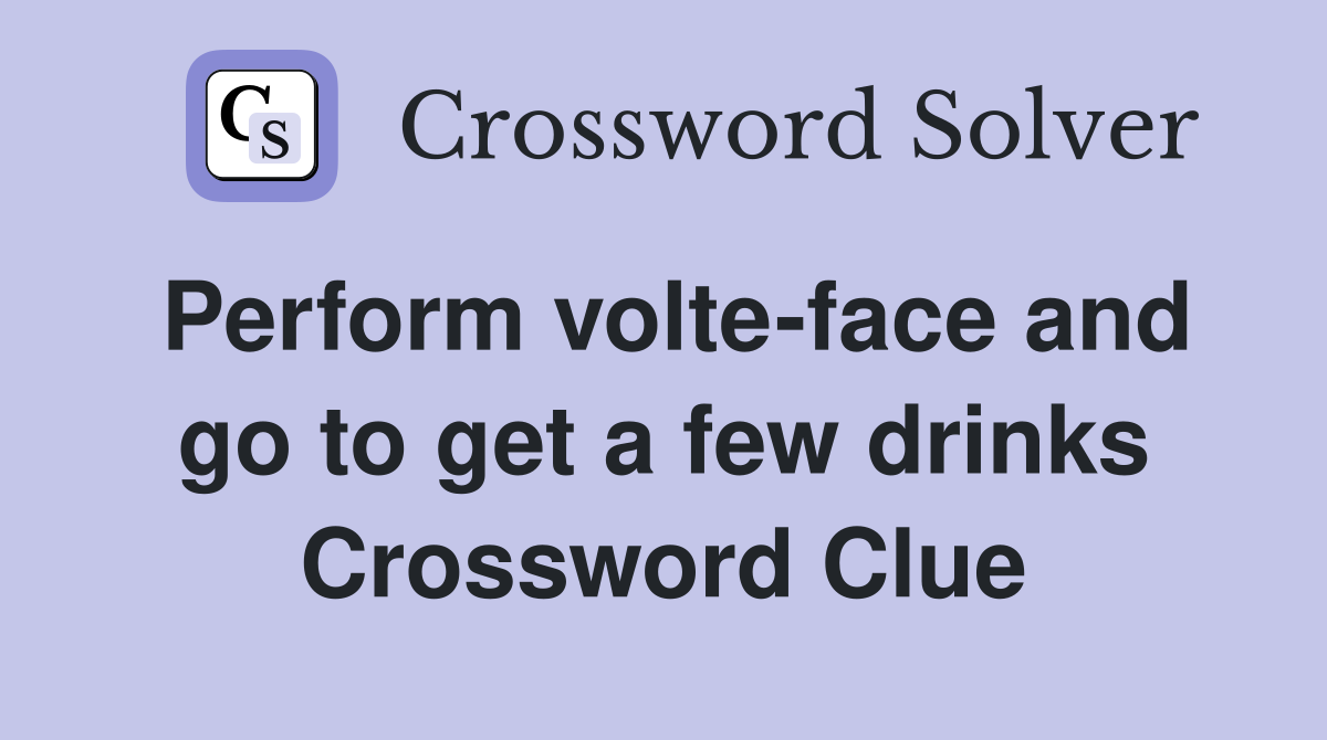 Perform volte face and go to get a few drinks Crossword Clue Answers