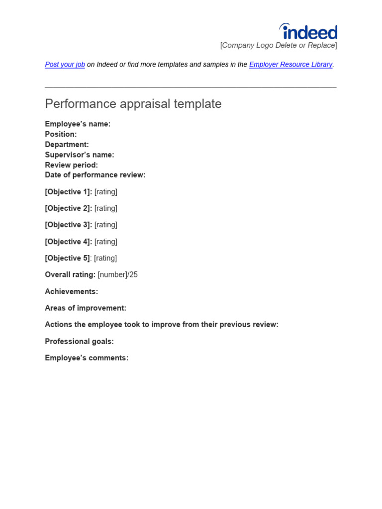 Free Employee Performance Appraisal Form Employee Performance Templates
