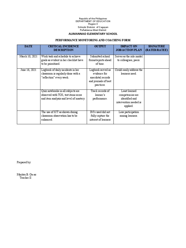 PMCF Sample Performance Monitoring Coaching Form V2 Studocu