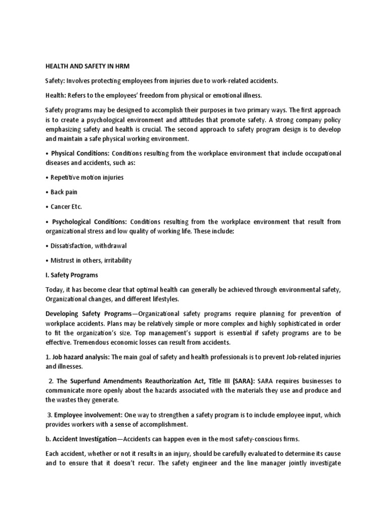 Health and Safety in HRM PDF Occupational Safety And Health Safety