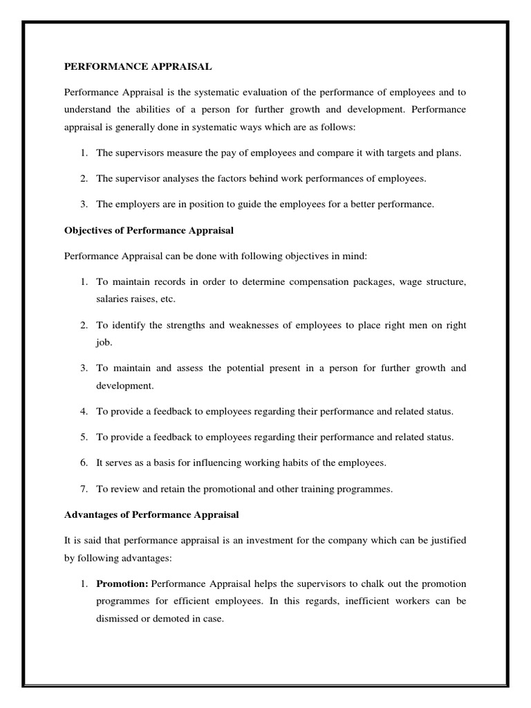 B) Advantages of The Performance Appraisal PDF Performance