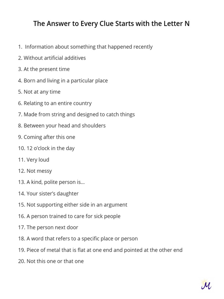 The Answer To Every Clue Starts With The Letter N PDF Language Arts