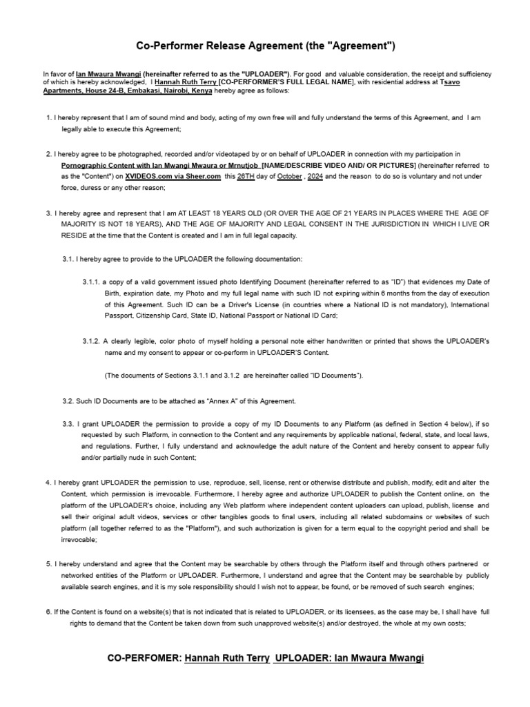 Hannah Ruth Terry Pornhub and Modelhub Co Performer Agreement PDF PDF