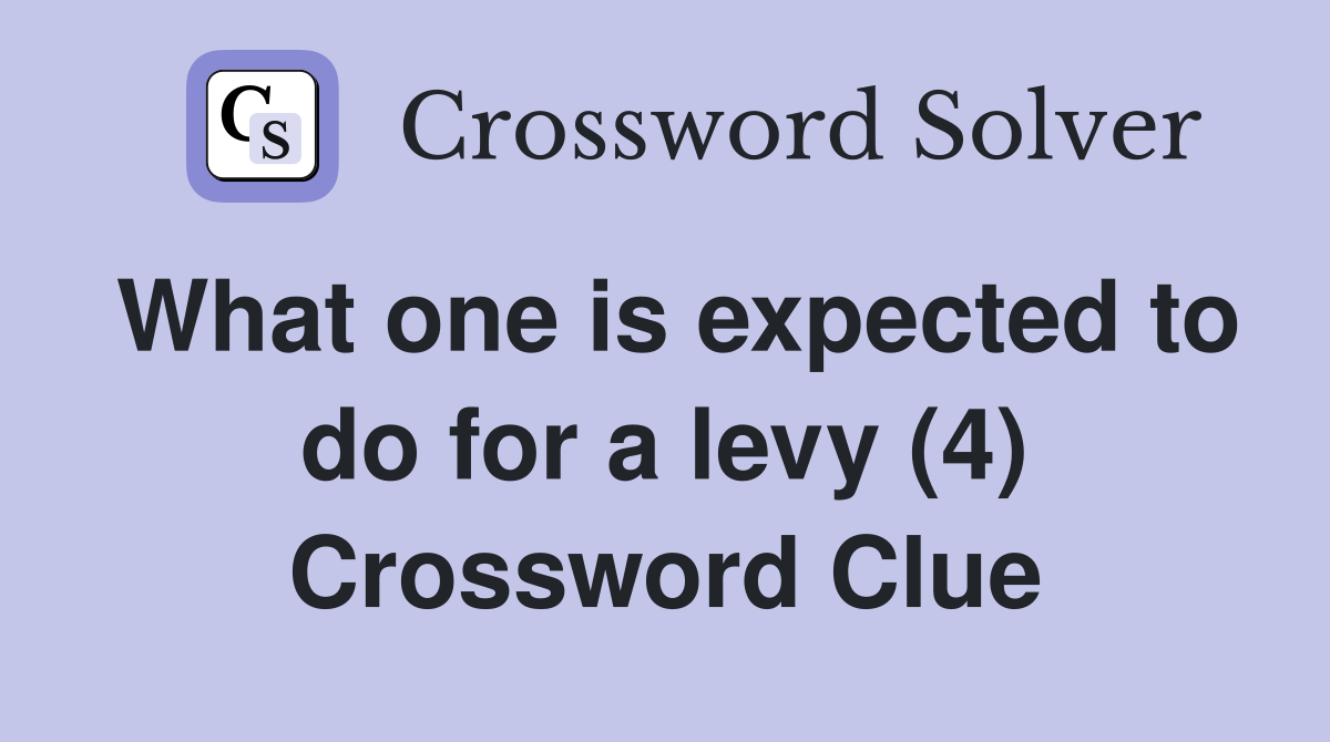 What one is expected to do for a levy (4) Crossword Clue Answers