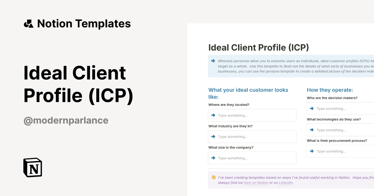 Ideal Client Profile (ICP) Template by Deborah Modern Parlance