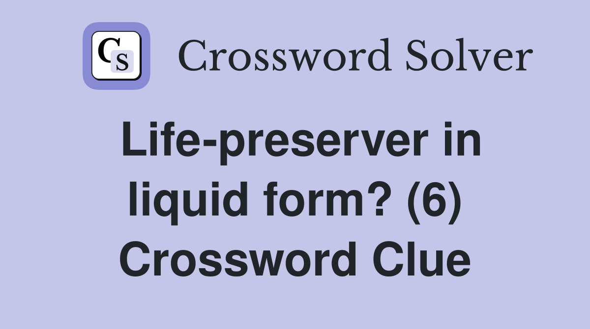Life preserver in liquid form? (6) Crossword Clue Answers Crossword