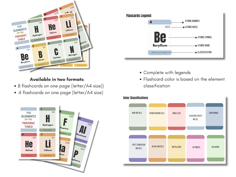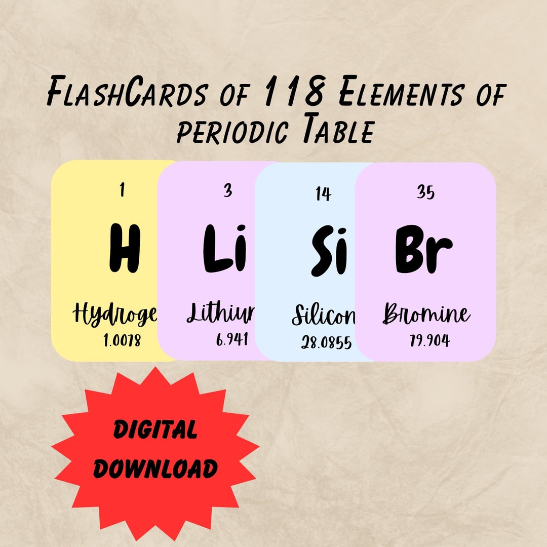 Periodic Table of Elements Printable Flashcards Chemistry Etsy