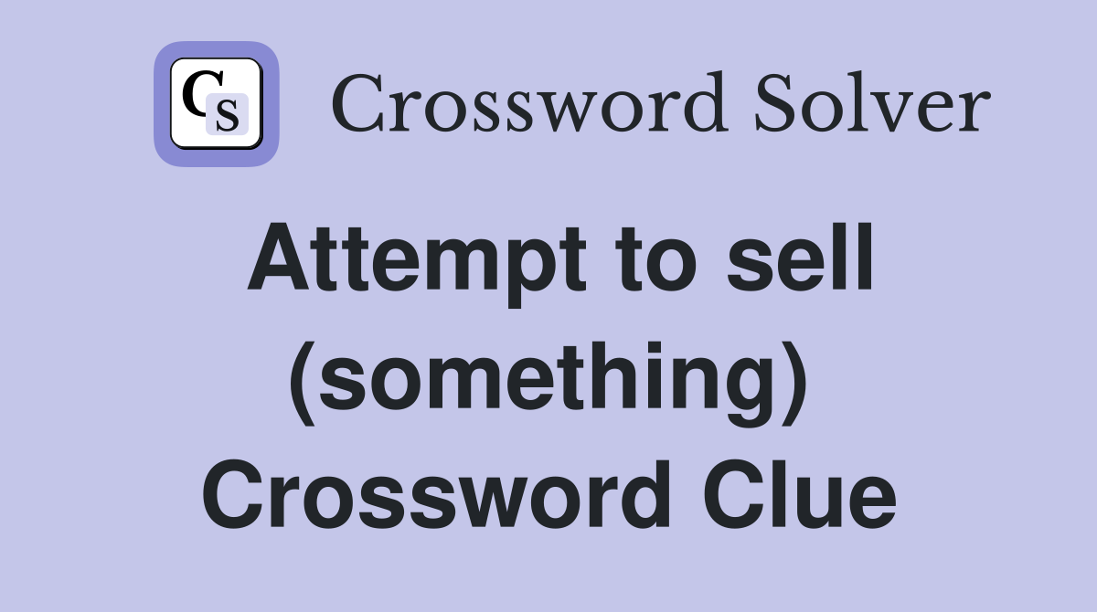 Attempt to sell (something) Crossword Clue Answers Crossword Solver