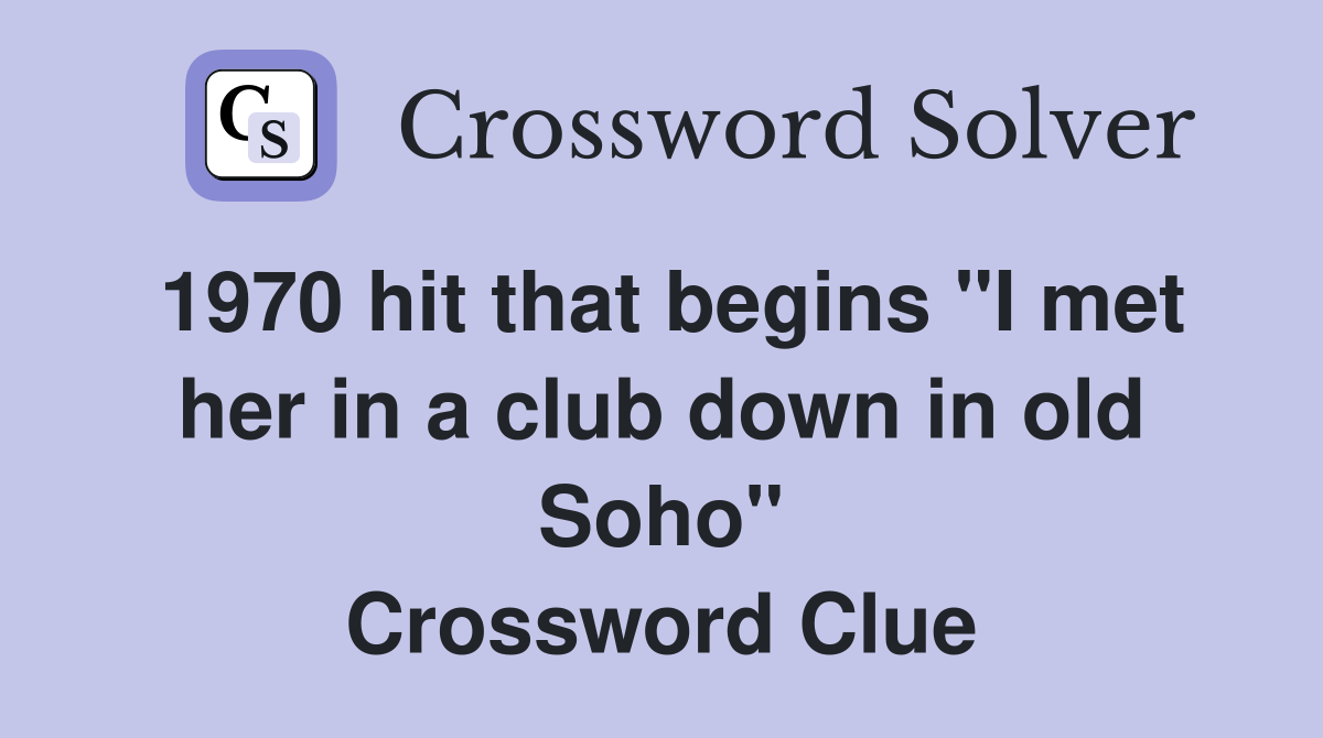 1970 hit that begins quot I met her in a club down in old Soho quot Crossword