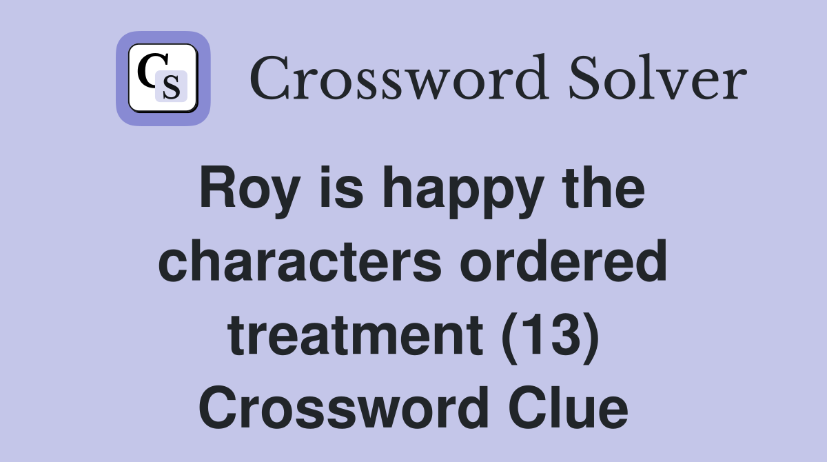 Roy is happy the characters ordered treatment (13) Crossword Clue