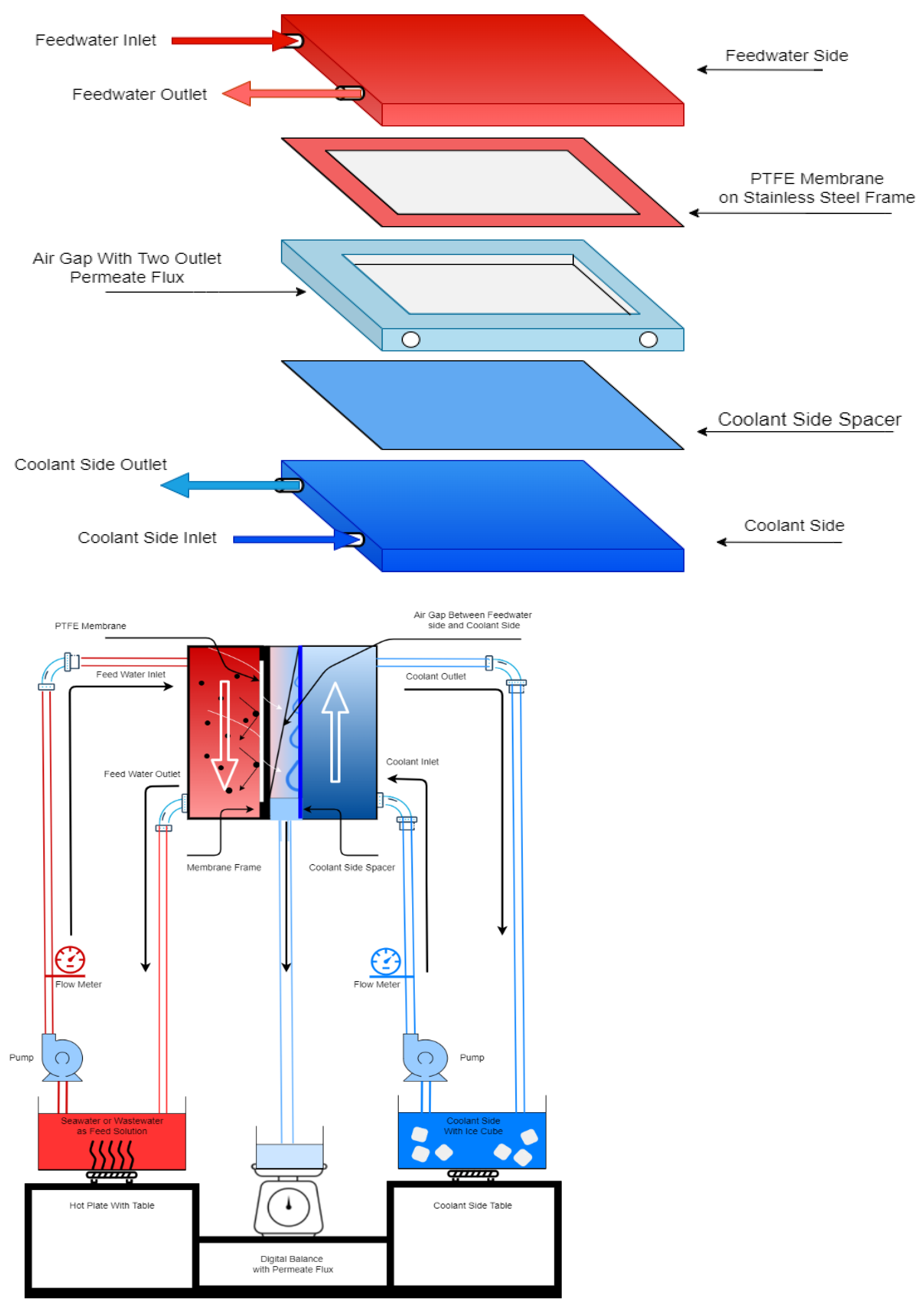 A schematic of the DCMD system The permeate flux (Jm) can be