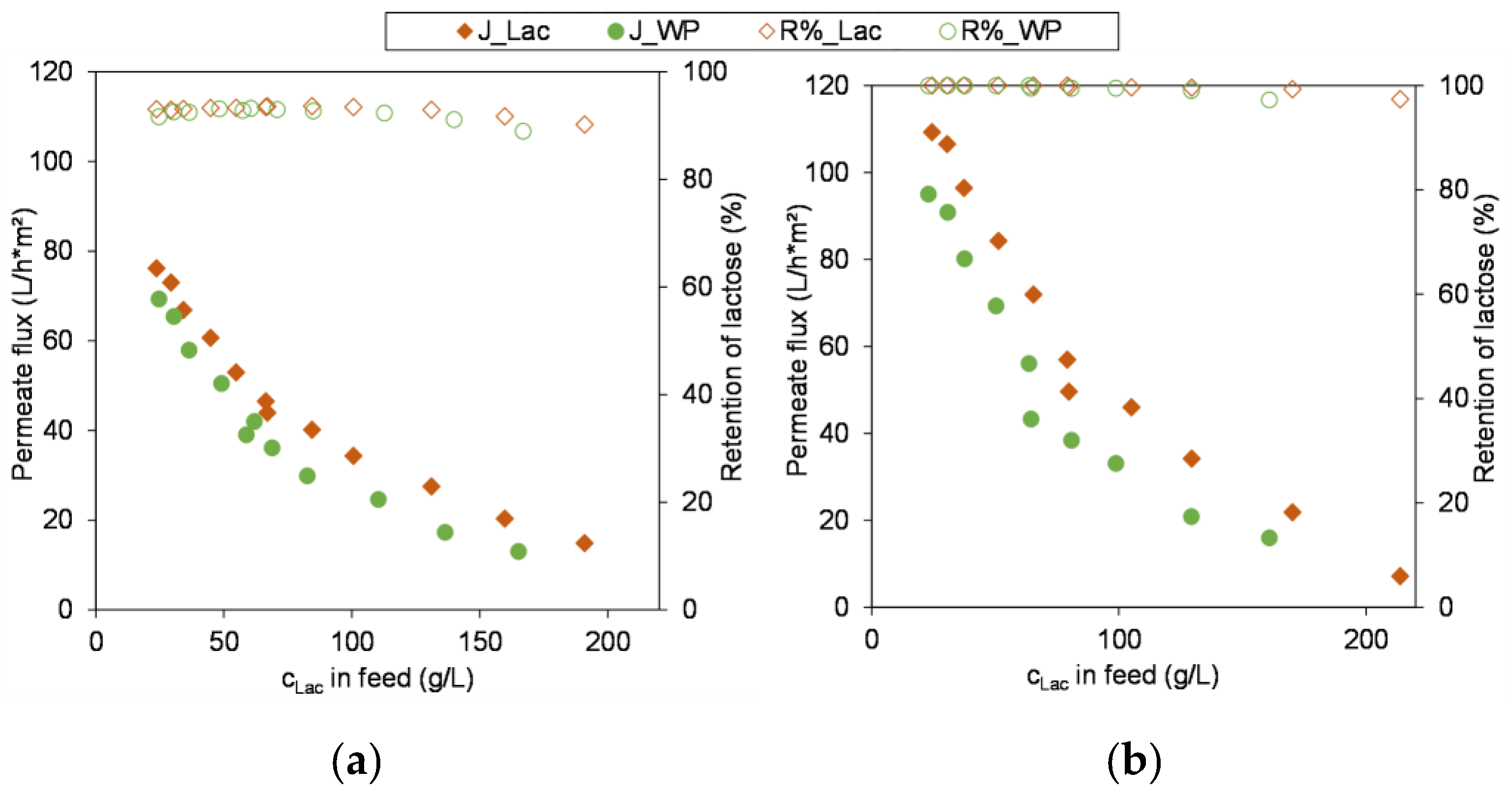Visual appearance of permeate (a) and retentate (b) of UF process