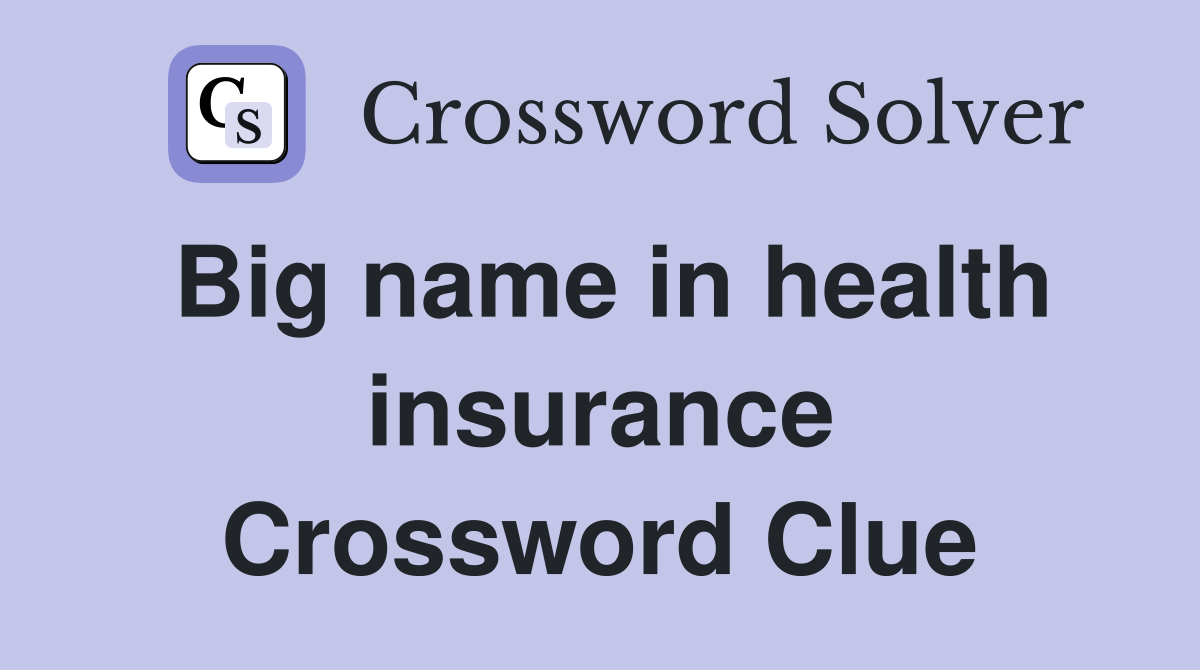 Big name in health insurance Crossword Clue Answers Crossword Solver