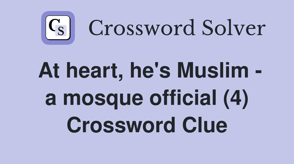 At heart he #39 s Muslim a mosque official (4) Crossword Clue Answers
