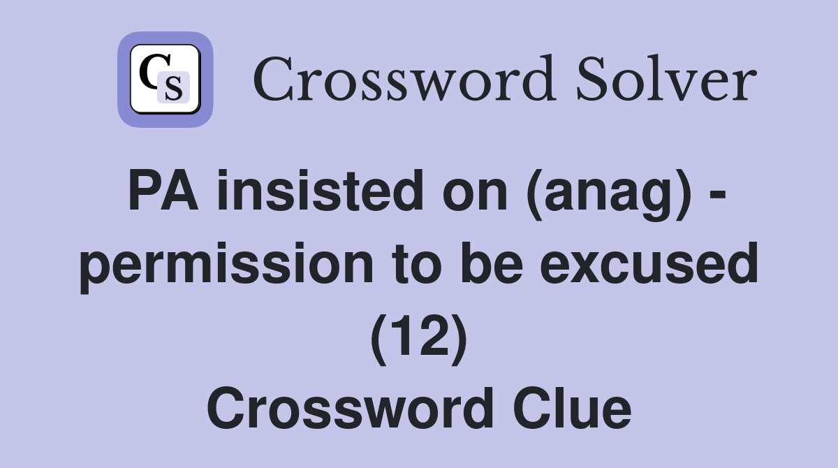 PA insisted on (anag) permission to be excused (12) Crossword Clue