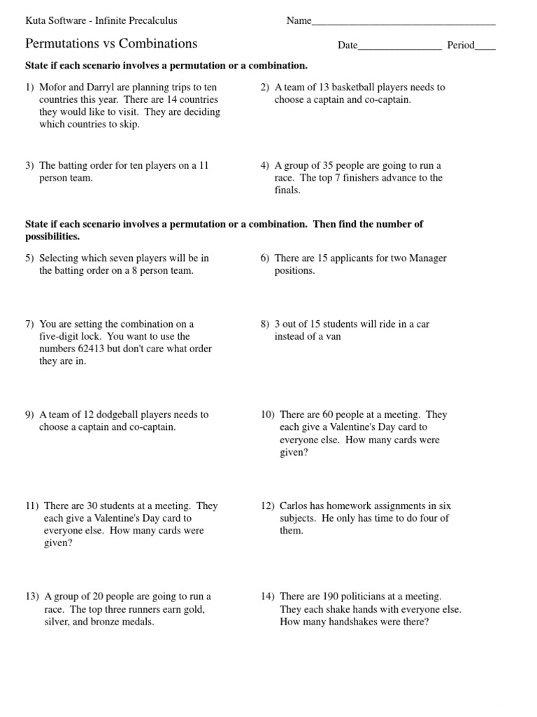 Permutations and Combinations Worksheet PDF Worksheets Library
