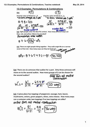 Permutations And Combinations Worksheet Ame my id