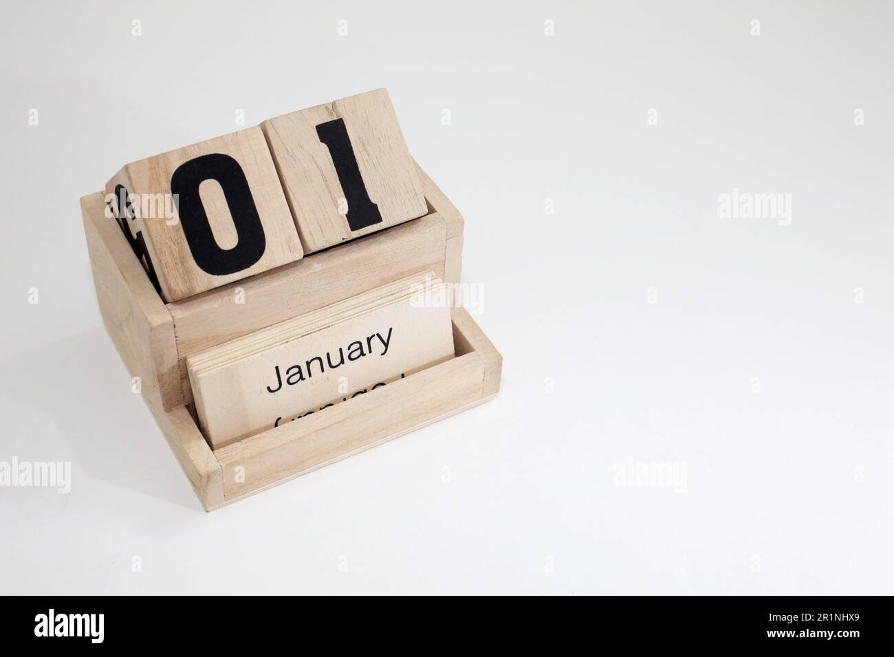 Wooden perpetual calendar blocks for January Stock Photo Alamy