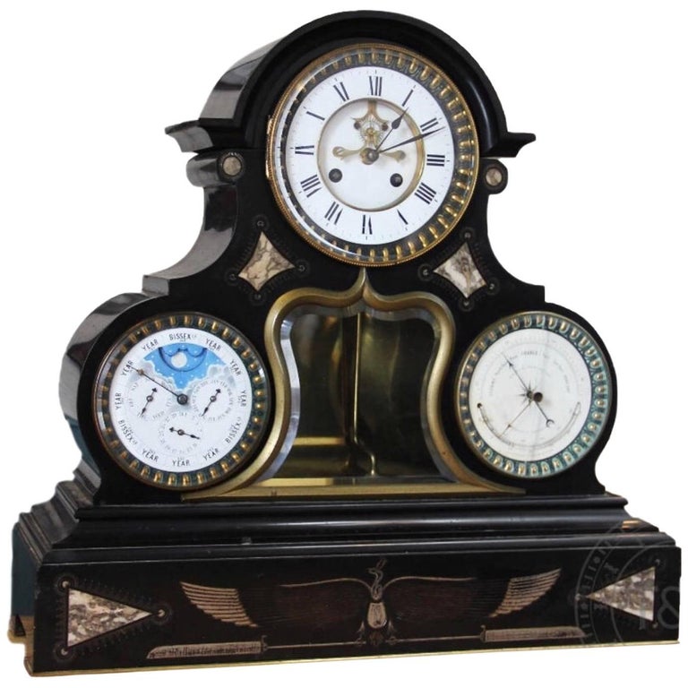 Antique 19th Century French Black Marble Perpetual Calendar Clock with