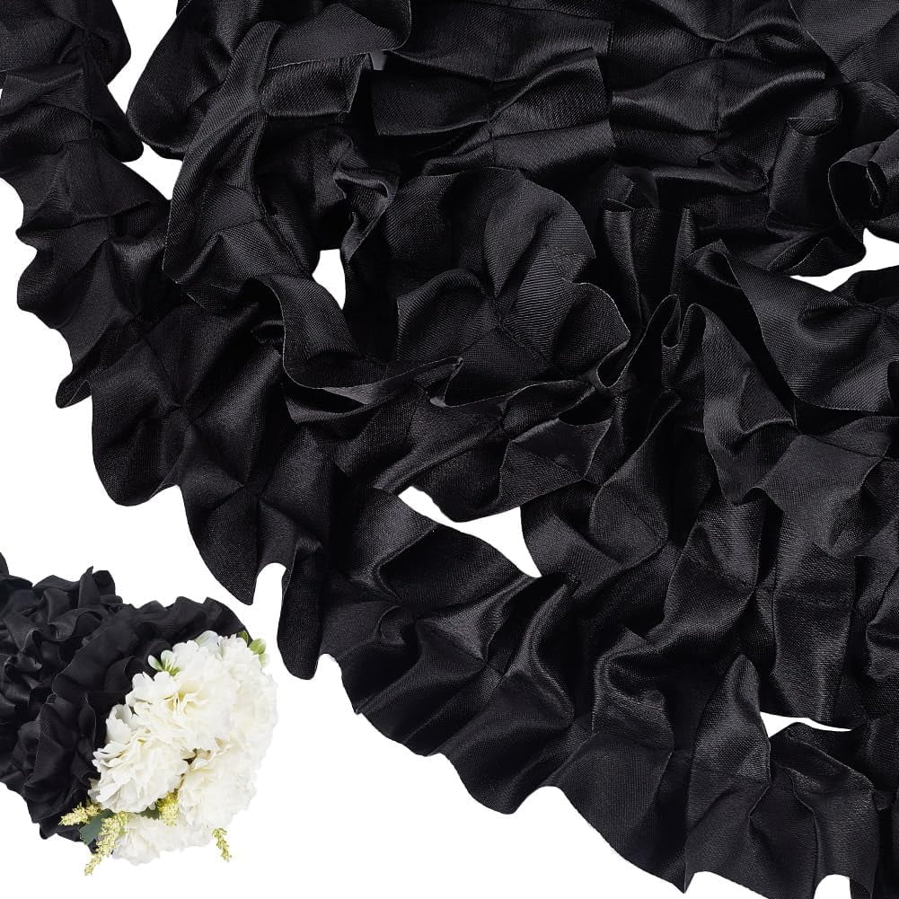 SUNNYCLUE 5 Yard Black Flower Wrapping Ruffle Ribbon Trim Pleated Lace