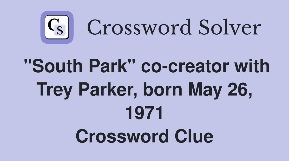 quot South Park quot co creator with Trey Parker born May 26 1971 Crossword