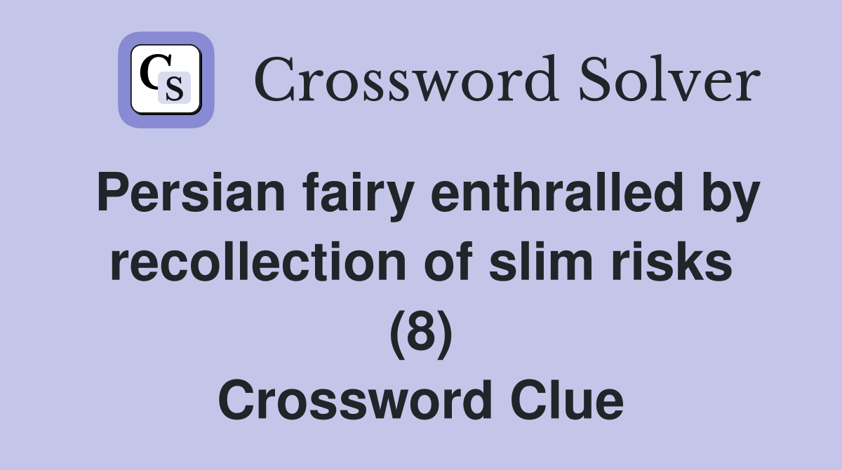 Persian fairy enthralled by recollection of slim risks (8) Crossword