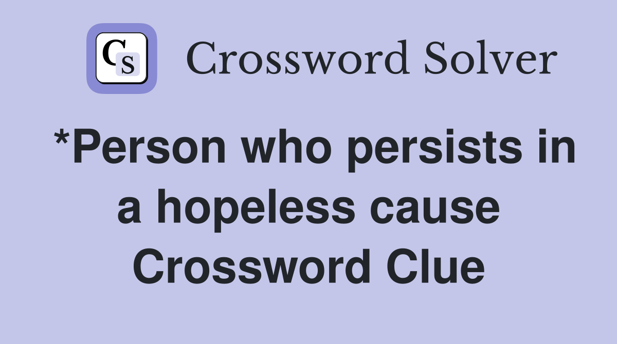 *Person who persists in a hopeless cause Crossword Clue Answers
