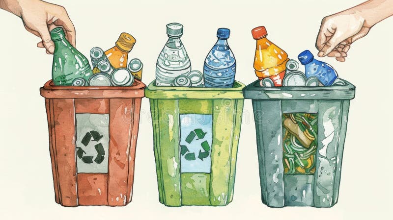 An Illustration of a Person Sorting Different Types of Recyclables into