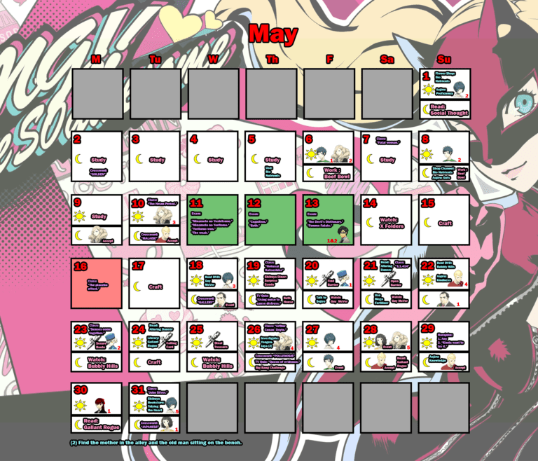 Persona 5 Trophy Guide (Original Royal): Detailed Calendar for Trophy