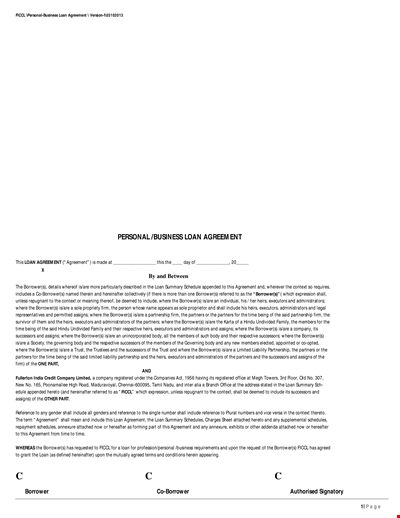 Personal Car Loan Agreement Template Borrower and Lender Agreement