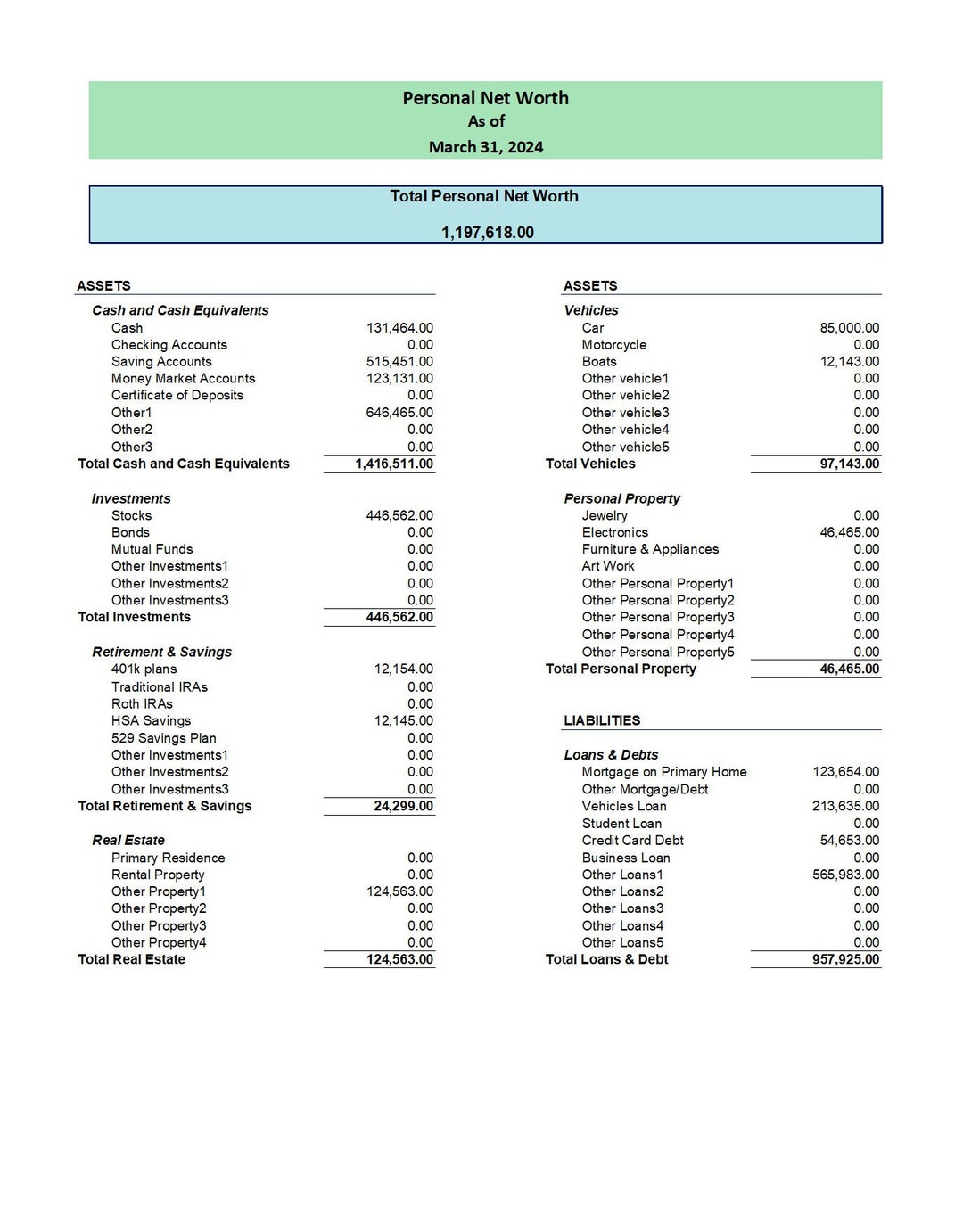 Here are some of the images for Personal Net Worth Template that we found in our website database.